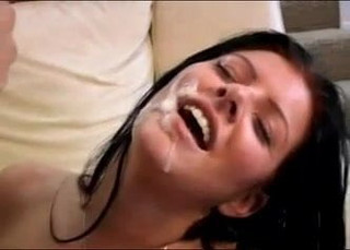 Dark haired chick gets a cheek well creamed